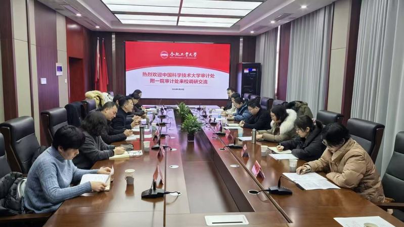 1月20日下午,中国科学技术大学审计处处长吕冰涛、中国科大附属第一医院审计处处长戴智敏等一行莅临我校,就高校内部审计工作进行专题调研,我校审计处处长陈竹及相关人员参加交流座谈。